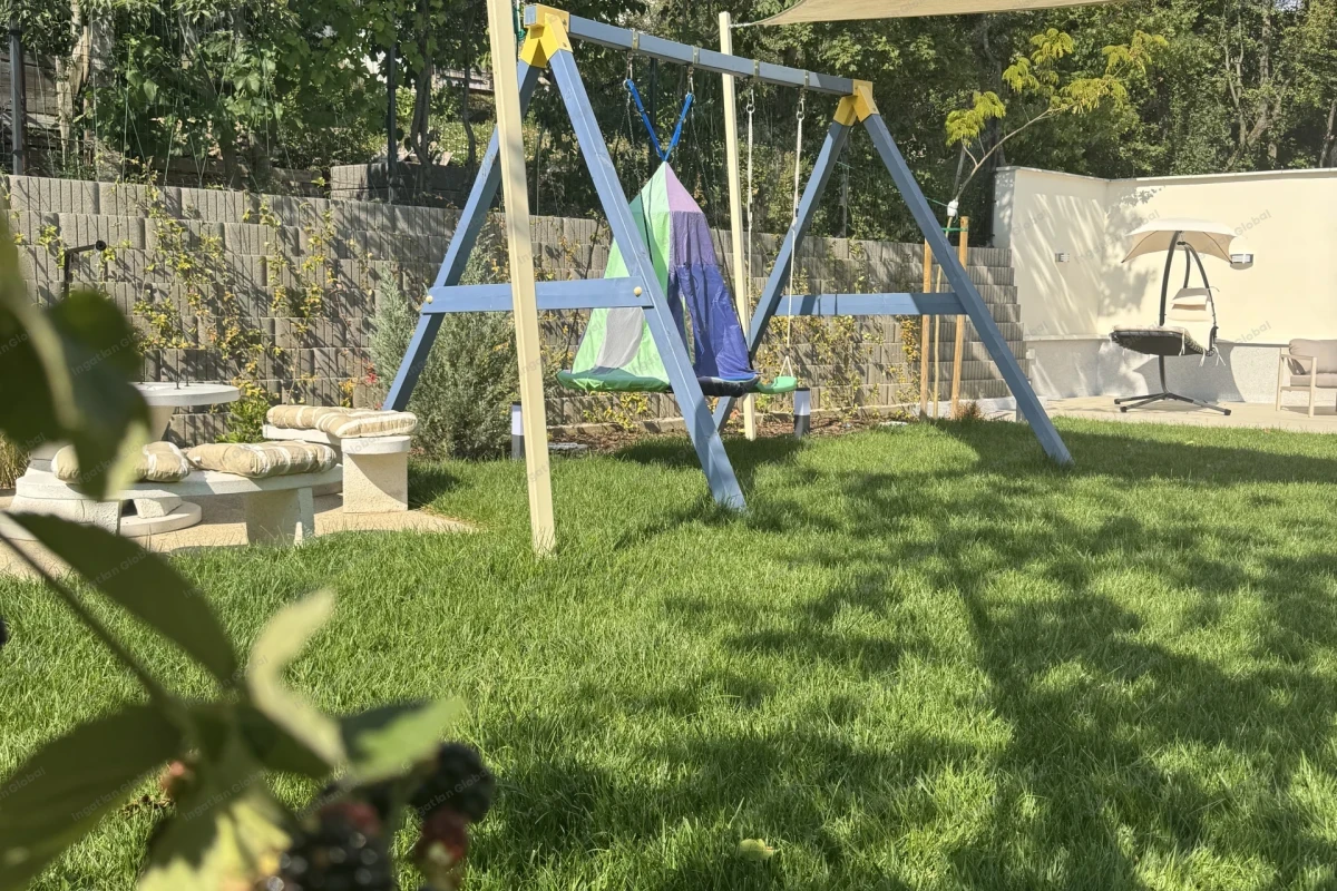 🎀Tulajdonostól eladó! 🌳🏡🐦🦋Mindennek természetközeli, madárcsicsergős hangulata van, finom eleganciával átlengve! 🌞DNy-i fekvésű, örökpanorámás, 250 m² -es, 2 generációs családi ház, 750 m² telekkel. 👌3 szoba + amerikai konyhás nappali + erkély (60 m²) + 2 hátsó, kertkapcsolatos terasz, 2 nagy udvarral. ✅Belsőépítész által tervezett minden négyzetcentiméter, miután a 2012-ben épült házat 2023-2024-ben teljesen felújítottuk. ✅Beépített minőségi bútorok és magas minőségű műszaki cikkek találhatóak meg a házban és az udvaron egyaránt. ✅WOLF kondenzációs kazán, az egész házon átfutó padlófűtés, inverter, hűtő-fűtő klíma, műanyag keretes, többrétegű üvegezés. -20 fokos hidegben, 23 fokos állandó belső hőmérséklettel 30.000 Ft a havi gázszámla! ✅3 fázis a házban (3x32 A), H mérőóra a legmodernebb villanyóra mellett. ✅60 cm mélyen humuszos, fekete talajra cserélt földréteg a teljes udvaron, ami kertészek által lett tervezve és parkosítva! Este hangulati fényekkel megvilágított örökzöldekkel, babérmeggyel, koralberkenyével és egész nyáron virágzó lombhullatókkal, még a növénytámfalas oldalkerítésnél illatos jácinttal lett üdévé téve. Közte vakondhálóra ültette mediterrán típusú gyepszőnyeg, esőérzékelős öntözővel és csepegtetővel. Nyári hangulatot a szeder, a málna és az áfonyasor teszi teljessé. ✅Az öntözést a mellékvízóra kiállás teszi költséghatékonnyá! 🤓Alsó szinten: Óriás garázs, melynek része egy különálló, 35 m² lakrész, amiben teljes értékű konyha, nappali, tusolós fürdőszobával kialakítva. 3 állásos garázs mellett egy tároló hely, valamint fitnesz sarok, mosókonyhával, vízlágyító berendezéssel 🧐Emeleten: Lépcsőházból nyíló, fényárban úszó nappali, amerikai konyhával. Konyhában márvány és gránitlapos munkafelületek, netfrontos festett és magas fényő frontlapokkal, beépített Electrolux mikró-sütő, -sütő, - 15 személyes mosogatógép, illetve Klarstein borhűtő. Fényárban úszó nappaliban 5.1-es hangrendszer. Kellmes hangulatú előszoba. Márványlapos vendég wc. Plafonig beépített kamra. Mindkét fenti szoba elektromos redőnnyel ellátott. Az előszobában egy 60 cm mély és plafonig beépített szekrénnyel kiegészített. A szülői hálóból egy kényelmes méretű, beépített szekrényes gardrób lett kialakítva. A szülői hálóból és az előszobából is be tudunk jutni az elegáns, Jack & Jill típusú, azaz több helyről megközelíthető márványlapos fürdőszobába, amiben a legnagyobb méretű külön álló Ravak, kád, Ravak csaptelep, Willeroy &Boch mosdó, - wc, - ledfényes fali tükör került, még a tusolóba Hansgroche csaptelep lett beépítve. Nagyobb szobából kiléphetünk a kertkapcsoltos egyik teraszra, ami a ház intim szféráját adó, vízszintes udvarrészhez vezet. Hátsó részen egy másik 30 m² -es folyókával ellátott, vastagon alábetonozott és bevasalt, vízszigetelt és feszültségmentesítővel aládolgozott terasz, csúszásmentes burkolattal , hogy egy óriás medence is kihelyezhető legyen . Kültéri hideg-meleg vizes, Grohe, esőztetős tusóló, mészkőlapos háttérrel és aljazztal, Viega lefolyóval. 🌳🏡Mindez természetvédelemi övezet mellett, Amerikai Iskolától 1 km-re! Boltok, iskolák, óvodák, bölcsőde, gyermek- és felnőtt orvosi rendelők a környéken. Budapesttől mindössze 7 km-re. Találkozzunk Nagykovácsiban, a Zsíroshegyen! Ár: 324.900.000 Ft (832.000 €)