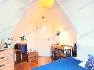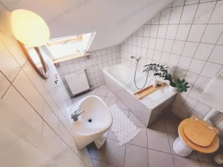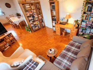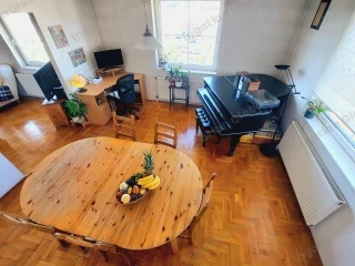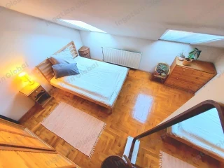 A lakás: A ház legfelső emeletén található, ún. „hasznos alapterületét” tekintve 77 négyzetméteres – az összes tetőtéri résszel együtt teljes területében valójában nagyobb - belső két szintes, részben felújítandó lakás 4 világos, tágas szobával és 2 fürdőszobával rendelkezik. Az 53,5 nm-es alsó szinten az előszobából nyíló konyha egy nagy, pulttal kialakított falkivágással kapcsolódik az étkezőhöz, átmeneti megoldásként az amerikai- és a hagyományos konyhatípus között. A nappali és étkező egybenyitott, így egy körbejárható közös teret létrehozva, mely az előszoba felőli bejáratainak köszönhetően igény szerint könnyen alakítható szeparáltabb egységekké is. A két szintet összekötő lépcső alatt a tér praktikus kihasználásaként egy zárt tárolóhelyiség kapott helyet, mely az alsó szinti fürdőszobából egy falba simuló ajtón keresztül érhető el. A tetőtéri felső szinten (23,5 nm) további két szoba található, illetve egy dolgozó-, olvasó- vagy tanulósaroknak is alkalmas fényes előtéri helyiség. Mindkét szinten van egy-egy fürdőszoba. Az egyik zuhanyzóval, a másik káddal rendelkezik, kiszolgálva a különböző igényeket. A lakást az elrendezése praktikussá teszi egy- vagy kétgyerekes családok részére is, illetve egymástól eltérő munkarendben vagy home office-ban dolgozók számára. 11 ablakának köszönhetően az év minden részében világos terek jellemzik, a sok szobanövényt kedvelők nagy örömére. Tájolása és magassága révén a konyhából a napfelkeltét, a nappaliból a naplementét lehet végig követni. A hideg- és melegvíz, illetve a fűtés a lakáson belül található egyedi mérőórával rendelkezik. A lakáshoz egy 2 négyzetméteres földszinti tároló tartozik. A ház négy emeletes, tégla építésű. Lifttel nem rendelkezik. A lakóközösség csendes, több éve itt élő lakástulajdonos, a lépcsőház tiszta, rendezett. Az első emeleten egy fogászati magánrendelő működik. A ház jogi státusza osztatlan közös tulajdon. A környék: Újpalotának a szolgáltatásokhoz és természetvédelmi területhez egyaránt közel eső részén van, így egyszerre adottak a városi mindennapok kényelméhez szükséges körülmények és az abból való kiszakadást biztosító nyugodt természetközeliség. A Tescoval egybeépített Pólus Centerhez (mozi, gyógyszertár, bank, posta, ruhaboltok, gyorsétkezdék, kávézók, edzőterem, játszóház, stb.) a lakók számára külön kulccsal nyíló kapun keresztül közvetlen átjárás biztosított, míg a mögötte elterülő Szilas-patak menti madárcsicsergős, erdős zöldövezet lovardával és kutyaiskolával szintén 5 perces sétára található. Egyéb boltok (Spar, Aldi, Lidl, World Mall), valamint termelői piac, illetve játszótér, teniszpálya, fodrászat, kozmetika szintén a közelben, gyalog 10-15 percen belül elérhető. A lakóparknak saját ingyenes parkolója van, a környéken pedig számos helyen van elektromos roller- illetve bérelhető autóállomás. Tömegközlekedéssel a belváros 30-40 perc alatt érhető el a nagyjából 10 perces sétára található buszvégállomásról (7,7E,8E,108E,133E,196) vagy a 69-es villamos megállójából. Autóval közlekedőként az M0-ás és az M3-as autópályák közelsége jelenthet könnyebbséget. Az éjszakai órákban nagyon csendes, fény- és zajszennyezéstől mentes környezet jellemző, nyaranta akár csillaghullás is figyelhető.