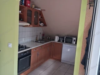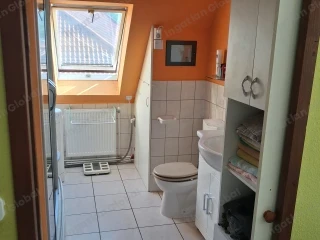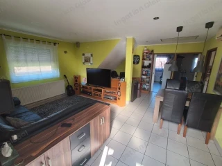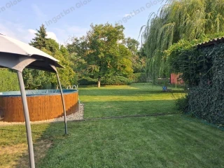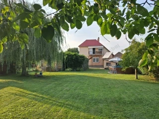 Dorog egyik legcsendesebb, átmenő forgalomtól mentes utcájában, gyönyörű környezetben KÉT GENERÁCIÓ számára is alkalmas, kétszintes családi ház ELADÓ. A gondozott, rendezett, nagy méretű, füvesített telek automata öntözőrendszerrel, gyűrűs kútról üzemeltethető. A telken két személyautó számára alkalmas téglaépítésű garázs van, mellette közel ugyanakkora, fapanelekből épített, fedett külső beállóval. A ház részben alápincézett, kb. 15 m2 alapterületű. A két szint szint egymástól függetlenül használható, külön bejárattal rendelkezik. Mindkét lakrészben saját konyha és fürdő, nappali és két hálószoba van kialakítva. Külön szabályozható, közös kazánnal fűthető. Alsó szint 95 m2 Emelet 70 m2 Garázs 60 m2 Melléképület és pince 25 m2 Az aló szint az 1960-as években készült, a felső szint a 2000-es évek elején lett teljeskörűen felújítva. Műanyag nyílászárók. Dorogon vagy Esztergomban levő, jó állapotú lakás megegyezés alapján beszámítható.