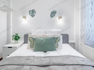 Miért szerettünk bele ebbe a napfényes lakásba, amikor megvásároltuk? Talán most Ön is így keres most otthont... Olyan ingatlant kerestünk, ahova besüt a nap, ami csendes utcára néz, ahol kellemesen lehet élni, ugyanakkor tágas, jó elosztású, erkélyes és ahol a lakóközösség is kedves. Szerettük volna, ha jó környéken van és könnyen elérhető, a Szent István Park mellett, pár lépésre a Duna parttól, mégis nyugodt csendes helyen. Mi 15 évvel ezelőtt ebben találtuk meg a 4. emeleti újlipótvárosi álomotthonunkat ahol 12 évig éltünk. Beköltözés előtt a lakás egy teljes felújításon esett át, mindenről fotó készült, ahol visszanézhető az elektromos rendszer, a vízvezetékek, az ablakok cseréje és a komplett felújítás. Két évvel ezelőtt pedig egy kisebb átalakítással még jobb elrendezést alakítottunk ki, klímákat szereltettünk be, hogy minden helyiségben a legforróbb napokon is kellemes lehessen a hőmérséklet.A szobákat jó minőségű laminált padlóval láttuk el. A lakás kb. 2 éven át volt rövid távú kiadásban, a minőségre emiatt is nagyon ügyeltünk. Sok vendég heteken át tartózkodott benne és vigyáztak rá, szerették, dicsérték a házat és a környezetet is. Itt valóban minden néhány lépésre megtalálható, óvoda, iskola, bölcsőde, orvosi rendelők, boltok, kávézók, éttermek és cukrászdák, a Szent István park, a Dunapart, negyed órányira pedig a Margit sziget és a Parlament. A közlekedés is kiváló, néhány perces sétával a Nyugati tér, a körút, a Lehel tér, a Westend elérhető. Ez a kis sétatávolság azonban pont elég ahhoz, hogy a környék nyugodt és csendes maradjon, kimaradjon a körút vagy a Westend nyüzsgéséből. Az épület bejáratához közel, az utca másik oldalán áll meg a troli, de a Hollán Ernő utca hangjai a csendes mellékutcára nyíló erkélyen és a belső udvaron keresztül nem hallatszanak fel. Kérésre megadjuk a nálunk megszálló vendégek véleményét bemutató linket. A lakásban egy tágas napfényes szoba van, erkéllyel, onnan nyílik egy tágas hall, ami nappali szobának ill. étkezőnek is használható. Ebből léphetünk a fürdőbe, másik ajtón át pedig az előszobába. Az előszobából közelíthető meg a kis szoba, a külön álló wc és a tágas konyha. A burkolásnál egyediségre törekedtünk, a felújításnál felhasznált anyagok jó minőségűek. A kis szobába az ablakon át besüt a nap, a fürdőszobán is van egy kis ablak a szellőzés elősegítésére. A nagy konyha is ablakos, sütés-főzés esetén ideális a szellőztetésre. A nagyszobában a nagy ablak mellett egy ajtón keresztül ki lehet lépni az erkélyre, ahol jó idő esetén kellemesen lehet pihenni. Minden nyílászáró hő - és hangszigetelt, modern, a szobák ablakai redőnnyel ellátottak. A bejárati ajtó komoly és szép biztonsági ajtó. Az épület Bauhaus stílusú, a lépcsőház szép, a lift néhány hónapja esett át egy teljes felújításon, modernizáláson. Természetesen a lakáshoz tartozik egy száraz, jó méretű pincerekesz is. A lakás azonnal költözhető, bútorozott, így ha megtetszik az érdeklődőnek, a bútorokról is meg tudunk egyezni. A képek nyáron készültek, a lakás azóta is ilyen, de győződjön meg róla saját szemével... Azt a leendő tulajdonost keressük, aki hasonlóan hozzánk, bele tud szeretni egy szép, felújított, tágas lakásba olyan helyen, ami Budapest parkos, frekventált részén található. Ha a leírás alapján érdekli a lakás, várjuk hívását, szívesen megmutatjuk. Az alaprajz tájékoztató jellegű.A tulajdoni lap alapján 72 nm az alapterület, mi magunknak mértük és számoltuk, 63 nm lett az eredmény. Az ingatlan tulajdonostól eladó, így nem kérjük ingatlanközvetítők segítségét.