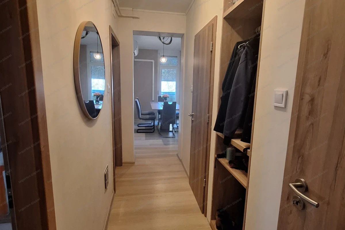 Eladó egy teljesen felújított 2 szoba étkezős 57 M2 lakás . A lakás 2 évvel ezelőtt teljes felújításon esett át ami minden vezeték (villany, víz) külső belső nyílászárók és burkolatok cseréjét érintette. Új fürdőszoba és konyha készült. A épület szigetelt. A fűtés kombinált villany és gáz. Hűtő fűtő klíma is felszerelésre került. A lakás orvosi ellátáshoz kórházhoz iskola óvoda és bevásárló üzlethez közel helyezkedik el. A jó megközelítést az épülethez közeli helyi buszmegálló és az épület előtti parkolási lehetőség biztosítja.